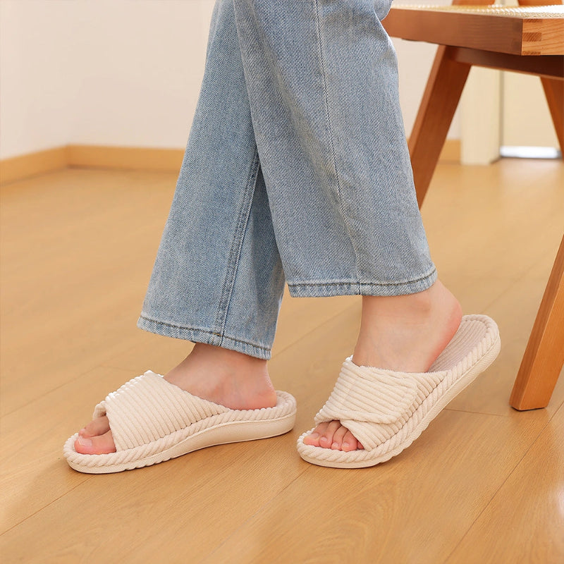 Apportez une touche de douceur et d’élégance à vos moments de détente avec ces pantoufles femme bout ouvert en velours côtelé, pensées pour allier confort, chaleur et style minimaliste. Leur design croisé moderne s’intègre parfaitement à une tenue d’intérieur chic et décontractée.