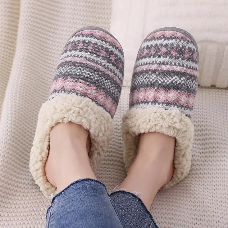 Dotées d’une doublure intérieure en fourrure et coton, ces pantoufles enveloppent entièrement le pied pour maintenir une température agréable même par temps froid. La matière douce et épaisse procure une sensation de bien-être immédiate, idéale pour se détendre après une longue journée. Ces pantoufles d’intérieur plates tricotées combinent souplesse et légèreté pour un confort optimal au quotidien.